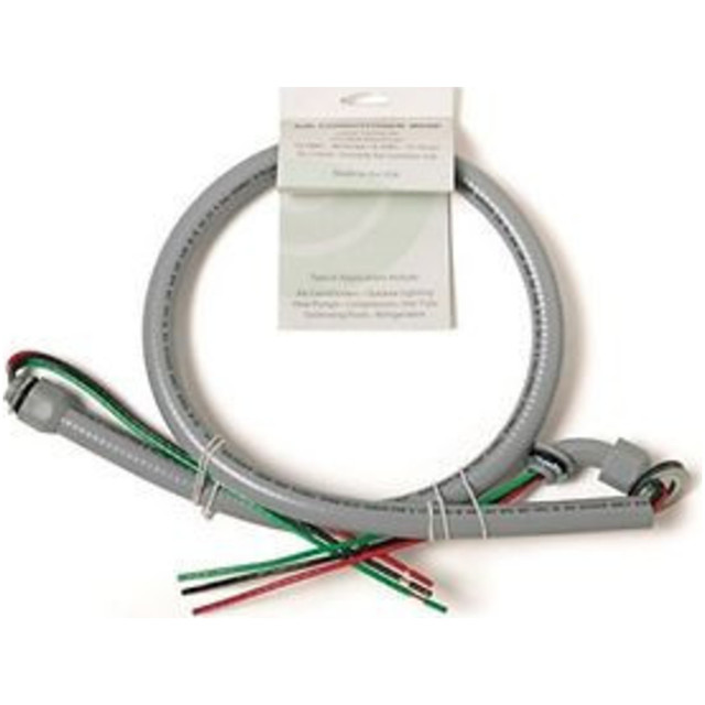 Shop Air Conditioner Whip, (3) 10 AWG Stranded-Red/Black/Green, 4 Ft., (1) Straight/(1) Right Angle Connector By...